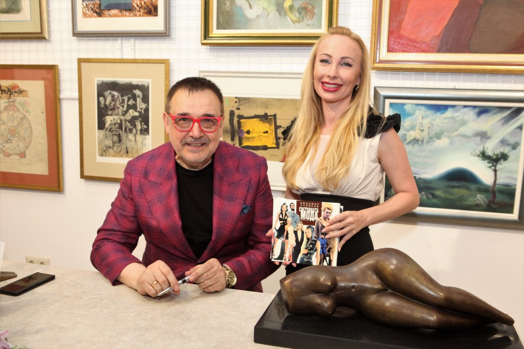 Тя пристигна в галерията, облечена в класическа изискана червена рокля на Валентино и в своето слово отбеляза: „Благодаря много на проф. Любомир Стойков, на Академията за мода и на галерия „Милениум“ за прекрасната вечер в чест на Валентино, който е най-известният италиански дизайнер и, когото жените безкрайно обичат.