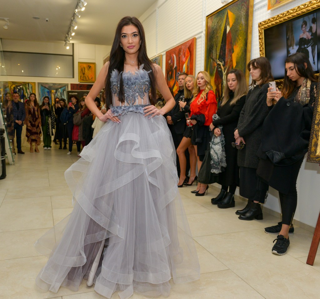 Радостина Илиева, дизайнер на модна къща „Алегра“ – модна къща за 2021, презентира модел „Семира“, който е изработен от фин италиански тюл в два нюанса – пудра и пепелно сиво-лилаво.