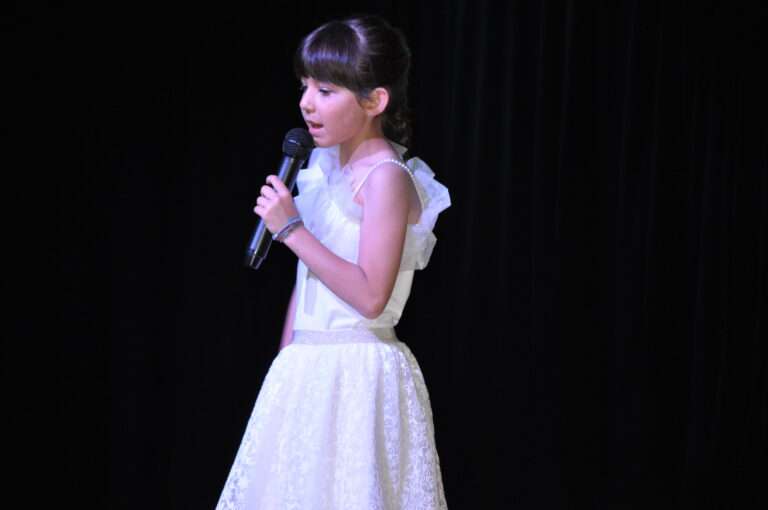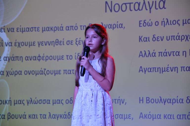 Петгодишната Надя Перикли с ръка на сърцето изпълни Химна на България. Малки и големи танцьори, певци и рецитатори от различни училища и танцови формации в над 3-часова програма показаха наученото през годината.