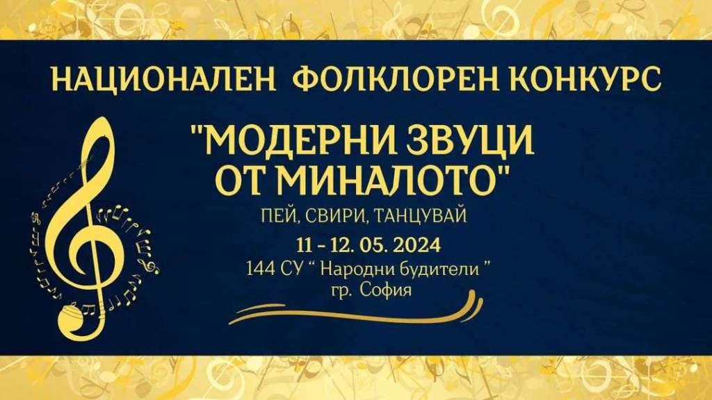 Включете се в Националния Фолклорен Конкурс „Модерни звуци от миналото“ пей, свири, танцувай, който ще се проведе на 11 – 12. 05. 2024г в 144 СУ „Народни будители“- гр. София.