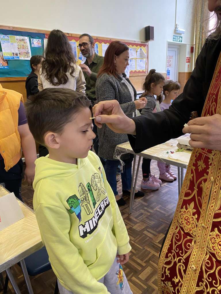 Православният свещеник, отец Йоан от гръцката църква „Света Варвара“ в гр Честър, запозна децата със същността на този ритуал и им обясни какво е за всеки християнин празника Великден. Той благослови и помаза всяко дете и гост, с масло от Великия маслосвет, извършен в четвъртък.