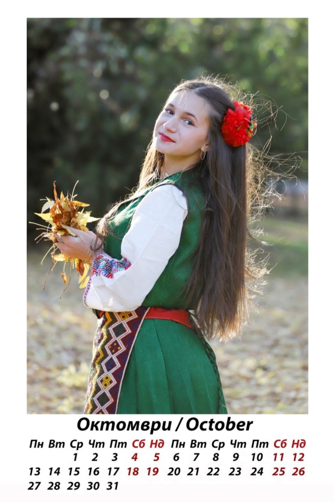 Лицето на месец октомври е красивата Вероника – прекрасна българска девойка, чието присъствие винаги озарява с чар и чистота. Рони е танцьорка в любимия ТА „Здравец“, с който е свързана и голяма част от личния ми живот. Уникален български ансамбъл, чийто творчески почерк е неподражаем, с традиции във фолклорното изкуство, а неговите възпитаници – красиви млади хора, виртуозни изпълнители както на български народни танци, така и на чужди фолклорни интерпретации. Този „златен“ кадър (есента й отива, нали?) изразява истинската прелест на есента в цялата й пъстрота. ♥“