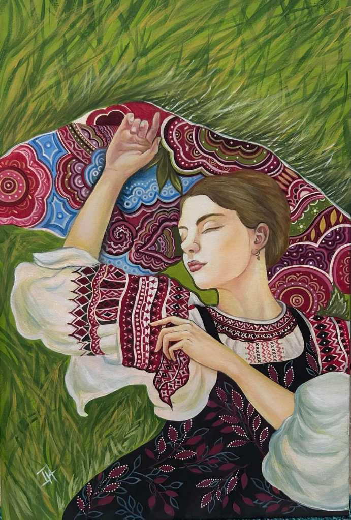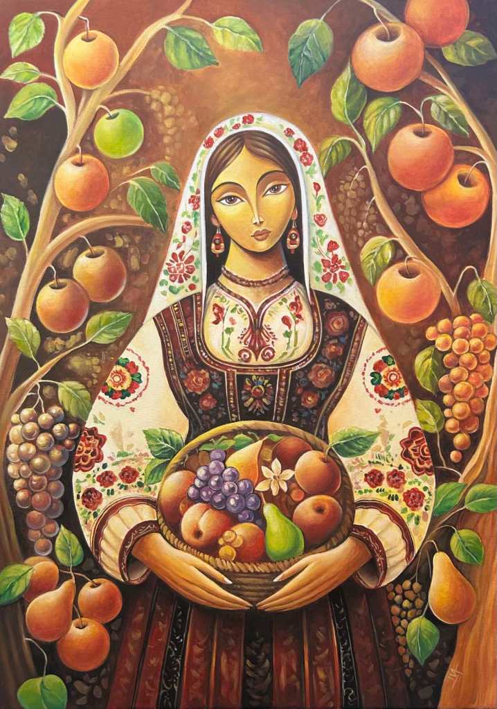 Определено, вярвам, че всяка моя картина носи не само образ, но и послание – за корен, идентичност и съхранена памет. Вграждам в тях символика, цветове и елементи, които говорят тихо, но силно – за любовта към рода, женската сила, духовността и връзката ни със земята, с корена, с родното място. Всяко цвете, всяка шевица, всяка героиня в картините ми казва нещо скрито – за това какво сме, преживели като народ и какво трябва да помним. Има пластове от емоции и истории, които не се виждат с очите, а се усещат със сърцето. Затова вярвам, че изкуството може да бъде не просто красиво, а значимо.