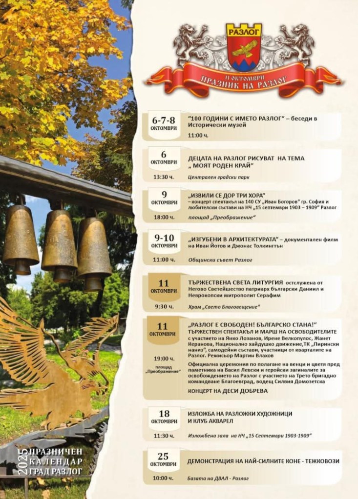 Разлог се готви да посрещне своя най-голям и обичан празник – 113 години от Освобождението на града, с тържествена, богата и вдъхновяваща програма, изпълнена с културни прояви, концерти, изложби и духовни ритуали.