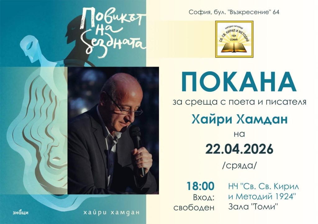 На 22 април 2026 г. в София ще се проведе вдъхновяваща литературна среща с поета и писател Хайри Хамдан.