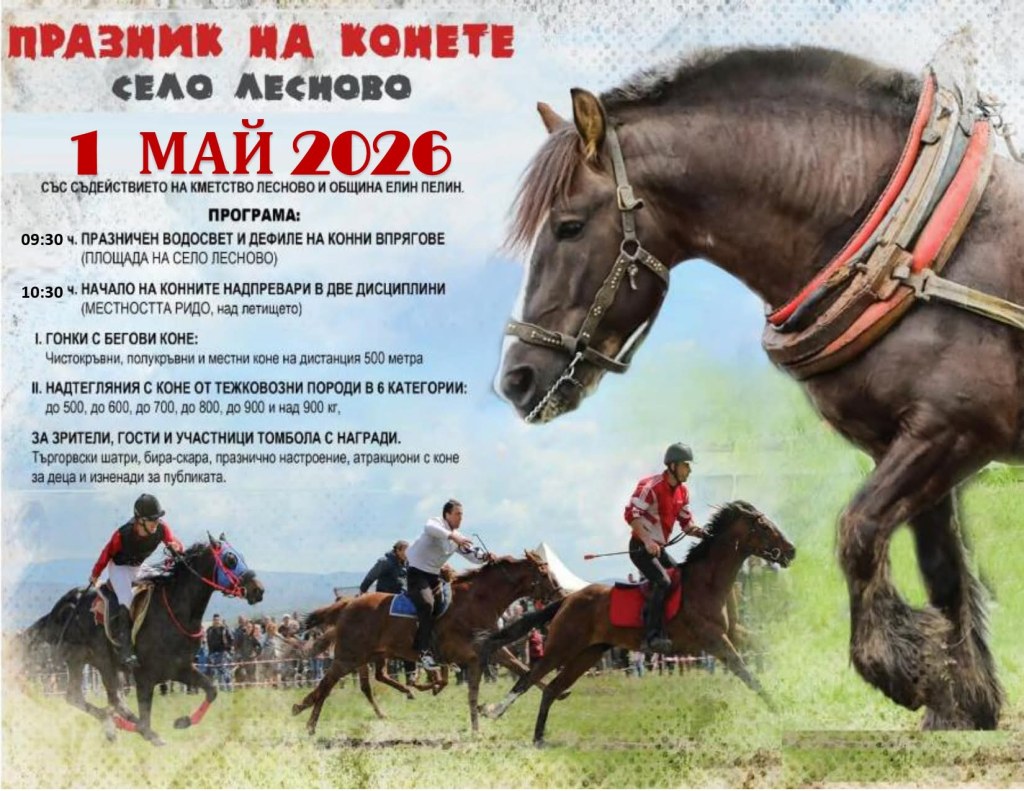 Село Лесново ще бъде домакин на традиционния „Празник на конете“, който ще се състои на 1 май 2026 г.