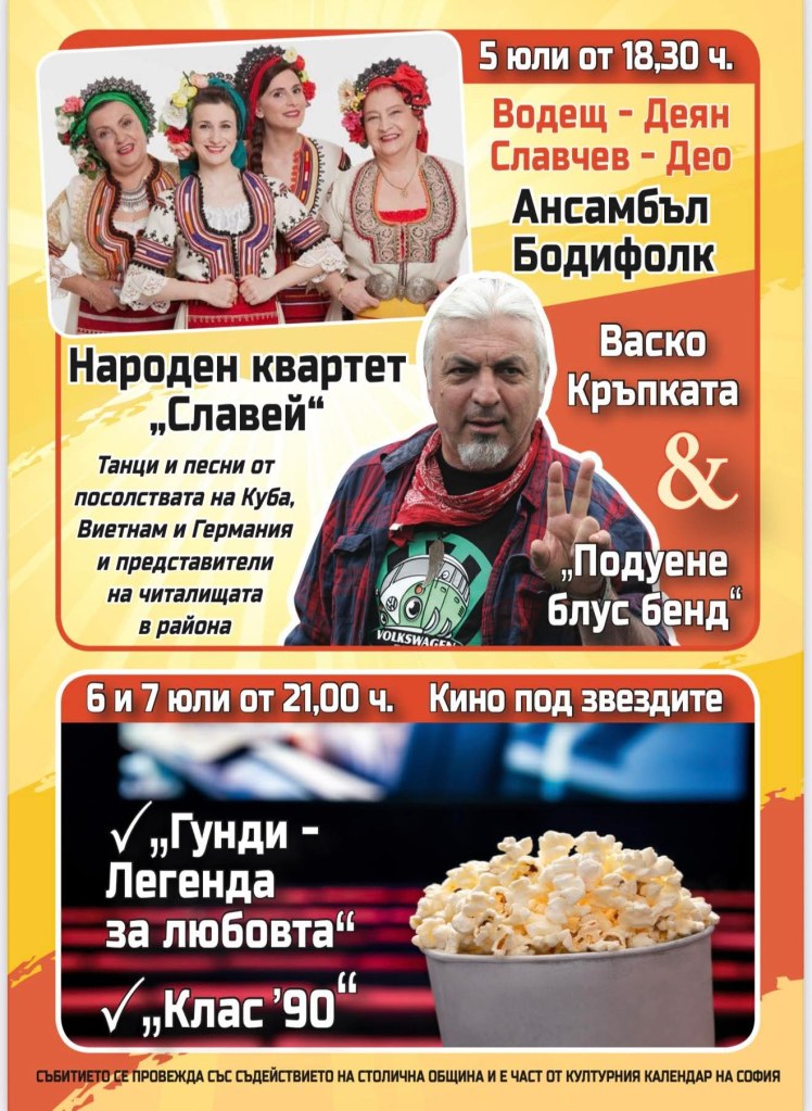 Фестивалът в район „Изгрев“ продължава с богата културна програма и любими имена от българската сцена.