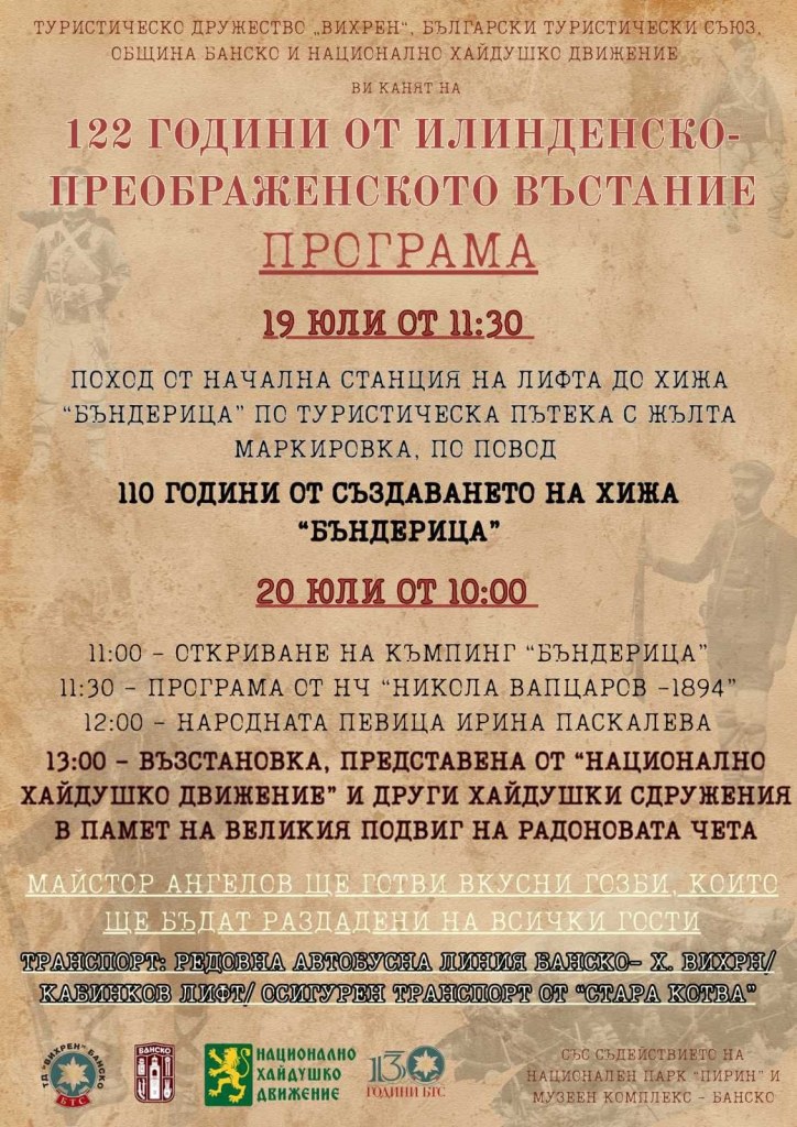 С впечатляваща двудневна програма Банско ще почете 122 години от Илинденско-Преображенското въстание и 110 години от създаването на хижа „Бъндерица“.