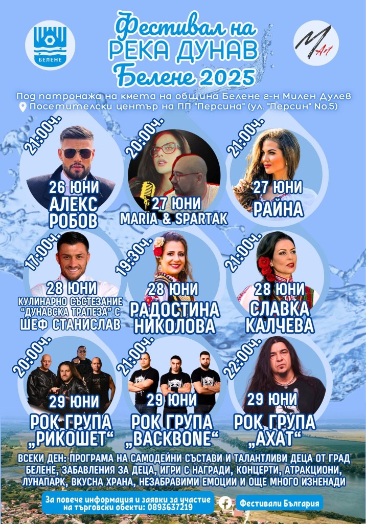Под патронажа на кмета на община Белене г-н Милен Дулев, градът ще бъде домакин на един от най-очакваните летни празници – „Фестивал на река Дунав – Белене 2025“.
