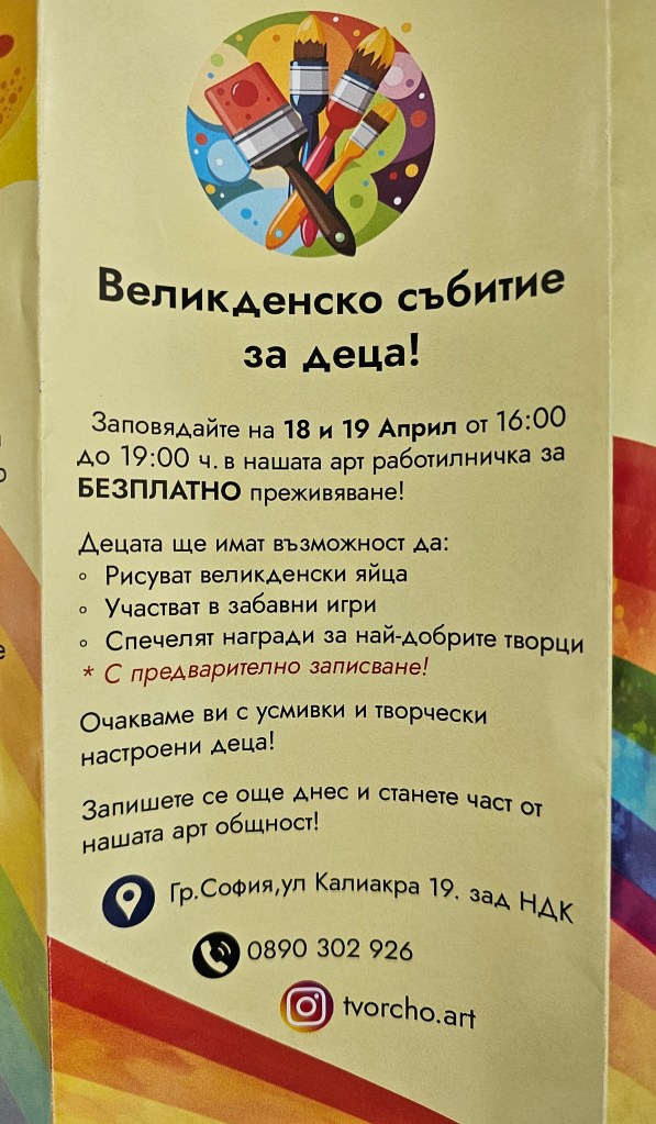 Търсите вълнуващо и креативно занимание за вашето дете по време на празниците? Посетете Великденското събитие за деца, организирано от творческата арт работилничка Tvorcho.art в София!