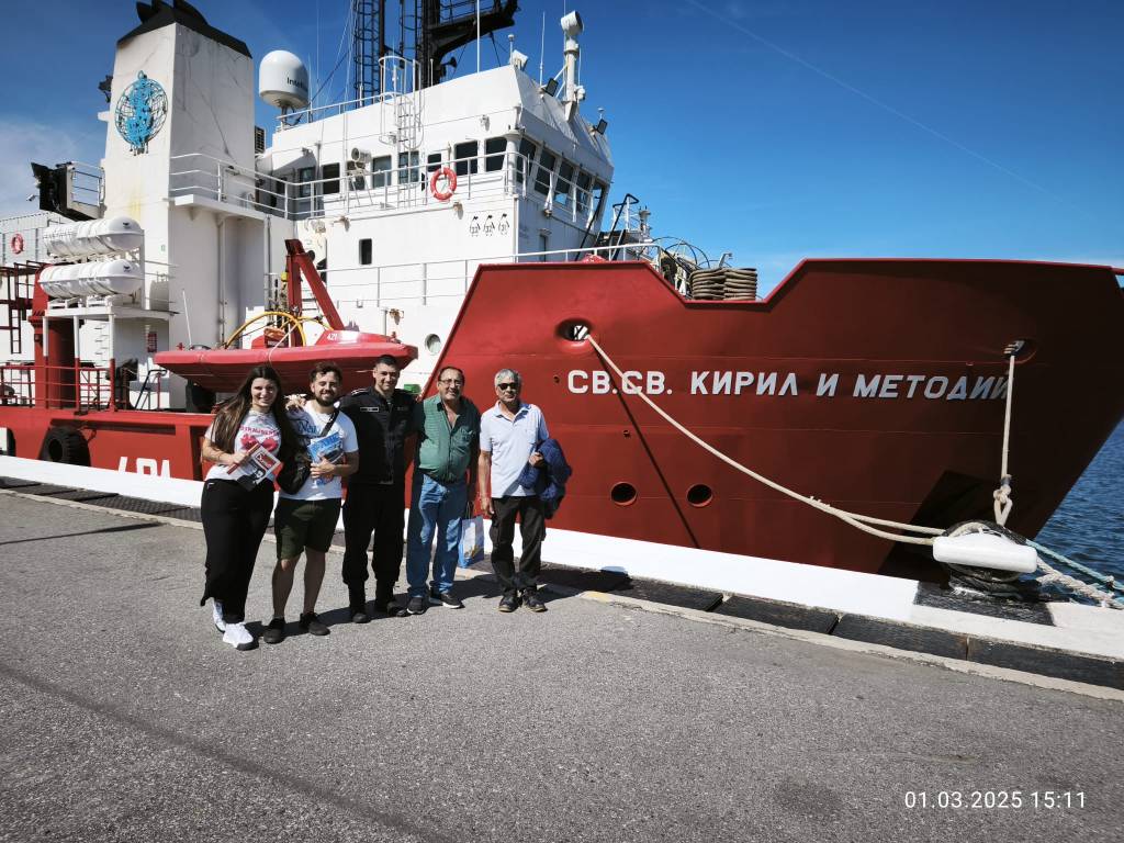 Президентът Педро Маркоф и счетоводителят Майра Кандела Маркоф, заедно с господата Хуан Кабайеро и Франко Ривадавия и други представители на Българско културно дружество „Христо Ботев“ от Президенсия Роке Саенс Пеня, провинция Чако, Република Аржентина, на 1 март 2025 г. посетиха Българския научноизследователски кораб „Кирил и Методий“ в пристанището на Мар дел Плата.