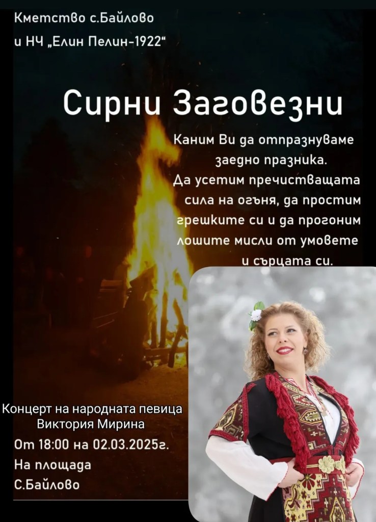 Село Байлово ще отбележи традиционния празник Сирни Заговезни с тържествено честване на 2 март 2025 г.