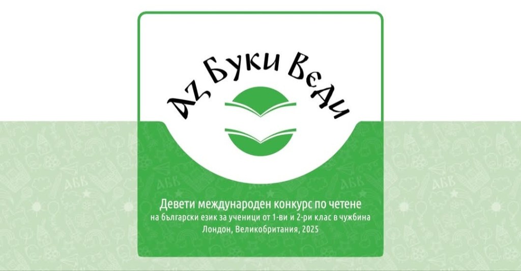 Включете се за участие в IX Международен конкурс по четене на български език за ученици от първи и втори клас в чужбина „Аз Буки Веди“ гр. Лондон Обединено Кралство Великобритания и Северна Ирландия на 21 юни 2025 г., от 11 часа.