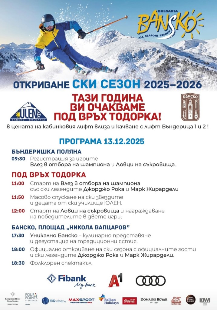 Ски курортът Банско официално ще открие сезон 2025/2026 на 13 декември с богата програма и множество събития под връх Тодорка.