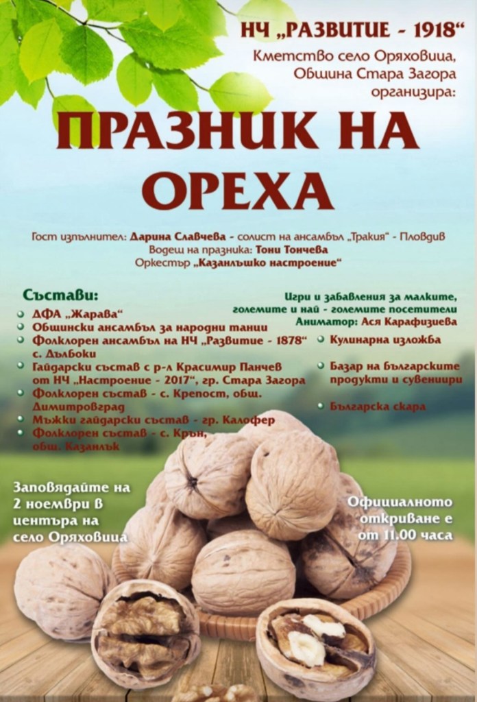 Китното старозагорско село Оряховица организира „Празник на ореха“.
