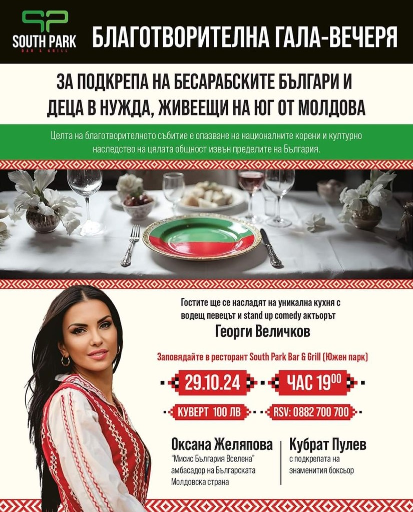 Вселена Оксана Желяпова, която е и „Ambassador of the Bulgarian culltural center in Moldova for international affairs“ отправя покана съвместно с подкрепата на боксьора Кубрат Пулев за благотворителна гала-вечеря в подкрепа на бесарабските българи, живеещи на юг от Молдова.