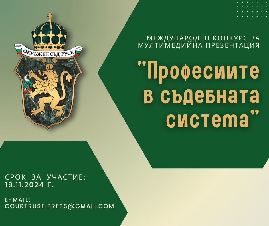 Окръжен съд – Русе и ИАБЧ , обявяват конкурс за изготвяне на мултимедийна презентация на тема „Професиите в съдебната система“ за учениците от V до ХІІ клас.
