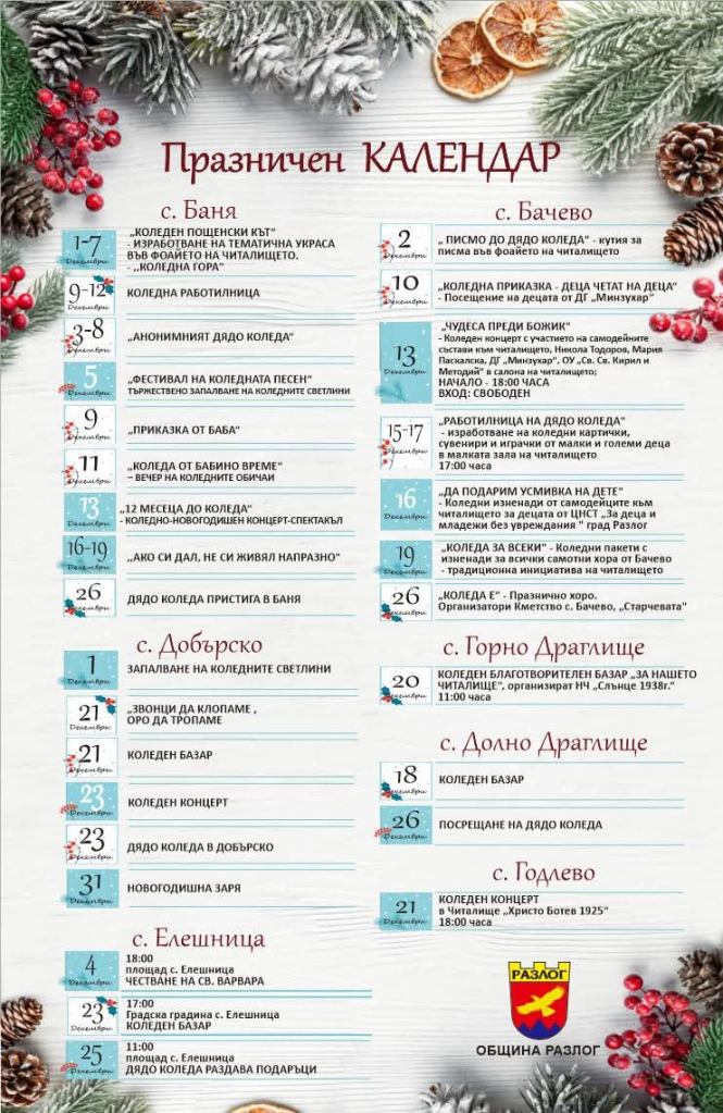 Община Разлог обяви своя официален Празничен календар за декември, изпълнен с коледни събития, концерти, работилници и традиционни обичаи във всички населени места на общината.