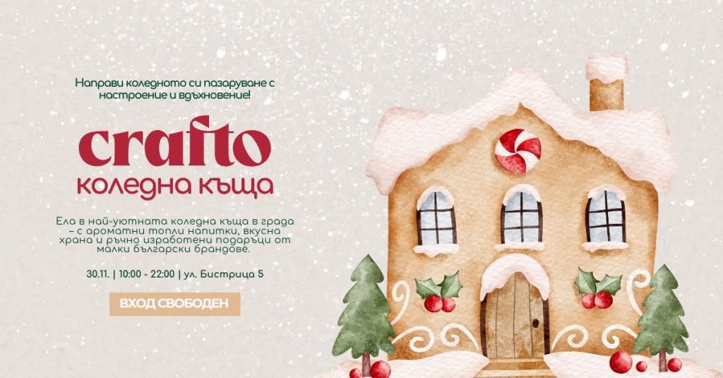 На 30 ноември, неделя, от 10:00 до 22:00 часа отварят вратите на „Коледна къща“ – уникално място в сърцето на София, където празничният дух, уютът и вдъхновението се преплитат в едно.