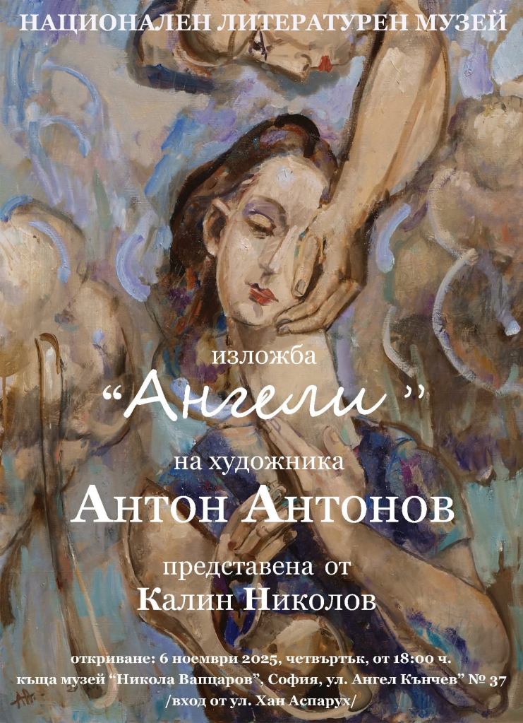 На 6 ноември 2025 г. от 18:00 ч. в къща музей „Никола Вапцаров“ в София ще се състои откриването на изложбата „Ангели“ на художника Антон Антонов.